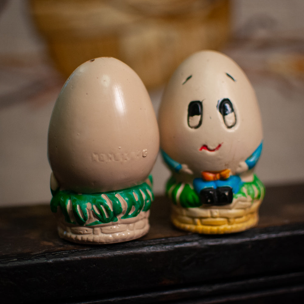 Vintage Humpty Dumpty Salt and Pepper Set Made in Hong Kong 1970s
