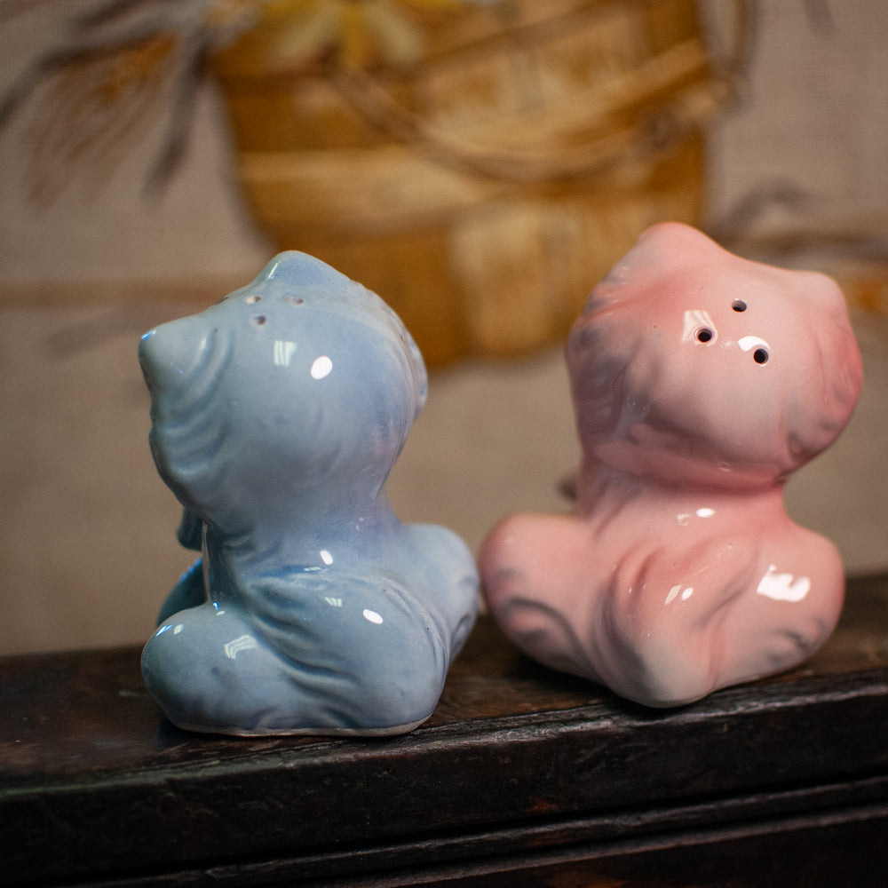 An adorable set of 1950's blue and pink cats with ribbons and hand painted accents. Made in Japan and in very good condition considering their age.